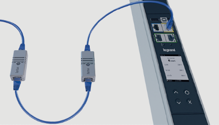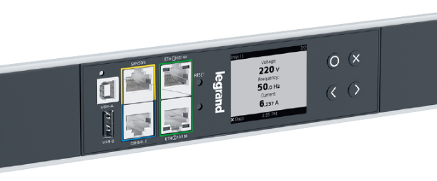 ![]() | További újdonság, hogy májustól bevezetésre kerültek a különböző szenzorok fogadására kész, komplett rack felügyeletre alkalmas, kapcsolható és mérhető intelligens elosztósorok (iPDU). Az új Legrand iPDU kínálat legfőbb egyedisége a beépített vezérlőegység, ami a hagyományos távfelügyeleti mérési és kapcsolási funkciókon túl képes a rackszekrényeken / hidegfolyosós rendszereken belüli összes kritikus mérési adat feldolgozására és megjelenítésére. A PDU kontrasztos LCD kijelzővel van ellátva, így esetleges hiba esetén helyileg is egyszerűen beazonosítható a forrás a lehető leggyorsabb beavatkozás érdekében. Az elosztósorok előlapján továbbá megtalálható számos kommunikációs csatlakozó: |