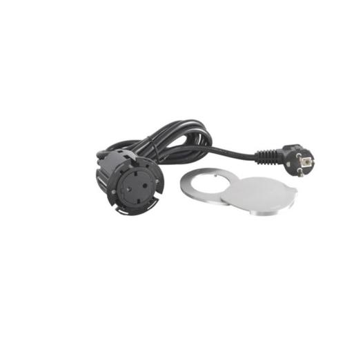 Incara Disq 60 - bútorba süllyeszthető 2P+F csatlakozóaljzat, 2m kábellel és fedéllel, fekete