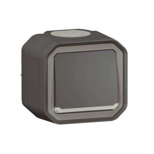 Plexo 55 falon kívüli egypólusú nyomó jelzőfénnyel 10A, összeszerelt, antracit