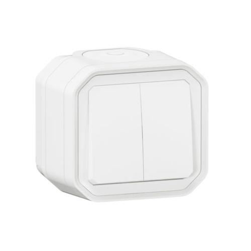Plexo 55 falon kívüli kettős váltókapcsoló 10A, összeszerelt, fehér