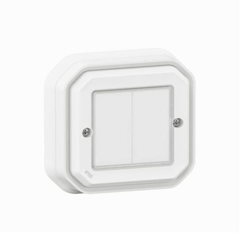 Plexo with Netatmo okos vezeték és elem nélküli kettős kapcsoló (KTV), falon kívüli, keret nélkül, fehér
