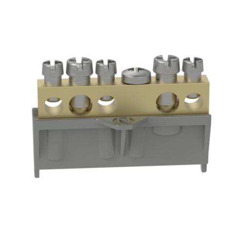PractiboxS csavarral rögzíthető csupasz sárgaréz N elosztókapocs, 5 kötési pont, 2x16mm² + 3x10mm²; Icc=6 kA