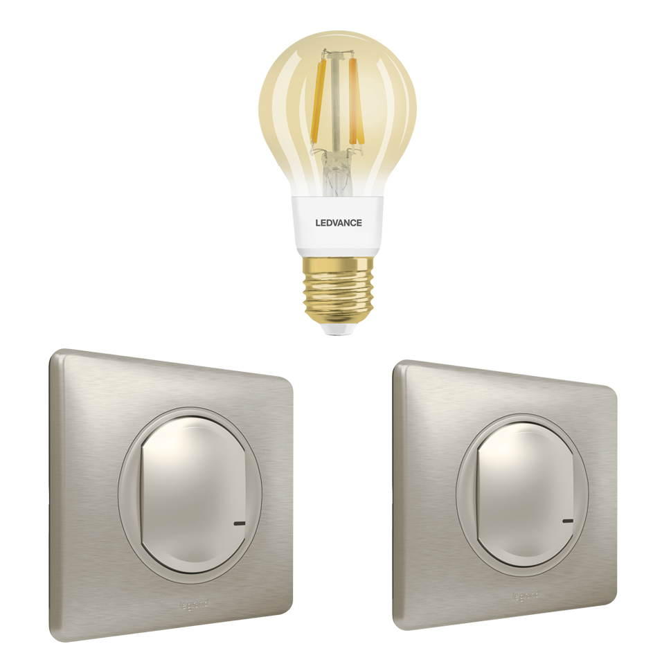 Smart Lighting okosotthon bővítőkészlet: filament fényforrás + 2 db Céliane with Netatmo kapcsoló/dimmer (ETV), titánium