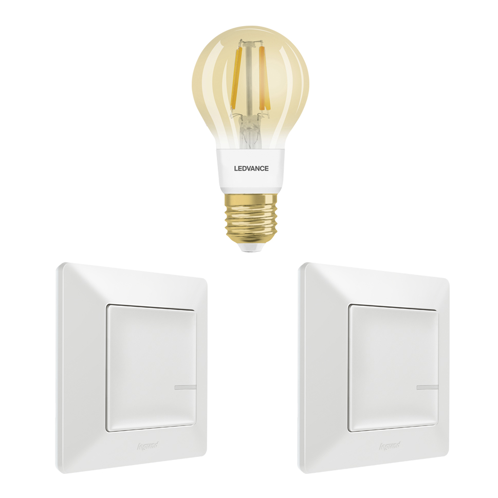 Smart Lighting okosotthon bővítőkészlet: filament fényforrás + 2 db Valena Life with Netatmo kapcsoló/dimmer (ETV), fehér