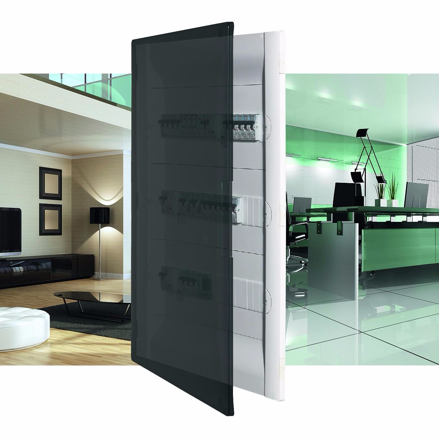 A falhoz szorosan illeszkedő ajtóknak köszönhetően a Practibox3 elosztószekrények tökéletesen beleolvadnak környezetükbe. A komplett szekrények 4 méretben kaphatók 1 - 4 soros változatban, soronként 18 modulos kivitelben, fehér vagy átlátszó füstszínű, igényeknek megfelelően fordítható ajtóval, valamint csavaros védőföld és nulla elosztókapcsokkal. A 2 soros változattól beépített zsanérok segítik az ajtó igény szerinti oldalra való rögzítését, és a könnyű záródás érdekében mágnesek találhatók az ajtó belső oldalán.