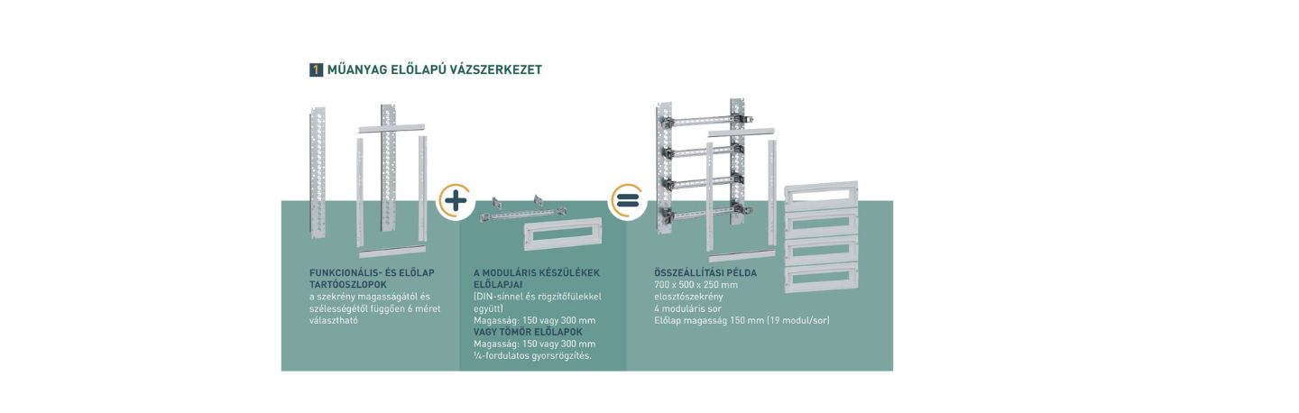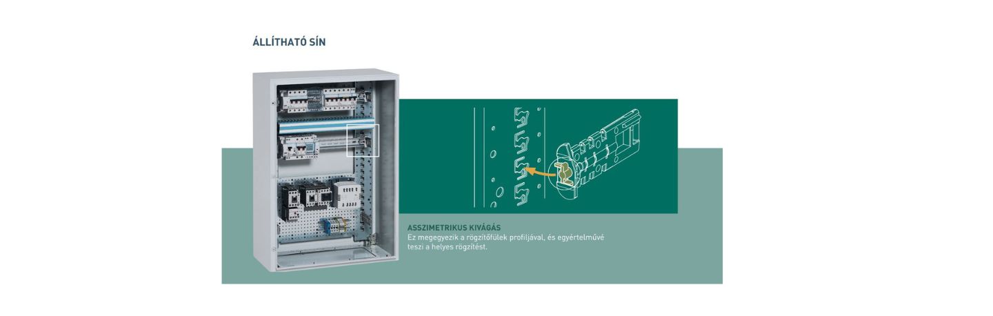 Innovatív megoldás a könnyű vezetékeléshez: a műhelyben történő vezetékeléshez a vázszerkezet kivehető, a szekrény belsejében könnyű a vezetékelés és a karbantartás, a moduláris termékek DIN sínre illesztése.