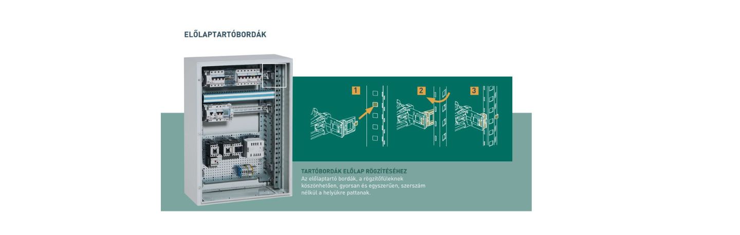 A Legrand olyan szerelési rendszereket fejlesztett ki, amelyekkel, a szekrény konfigurációtól függetlenül, optimalizálják az összeszerelési időt. A sínek elhelyezését megkönnyítik a praktikus kivágások, amelyek segítik az előlap és az előlaptartóbordák bepattintását.
