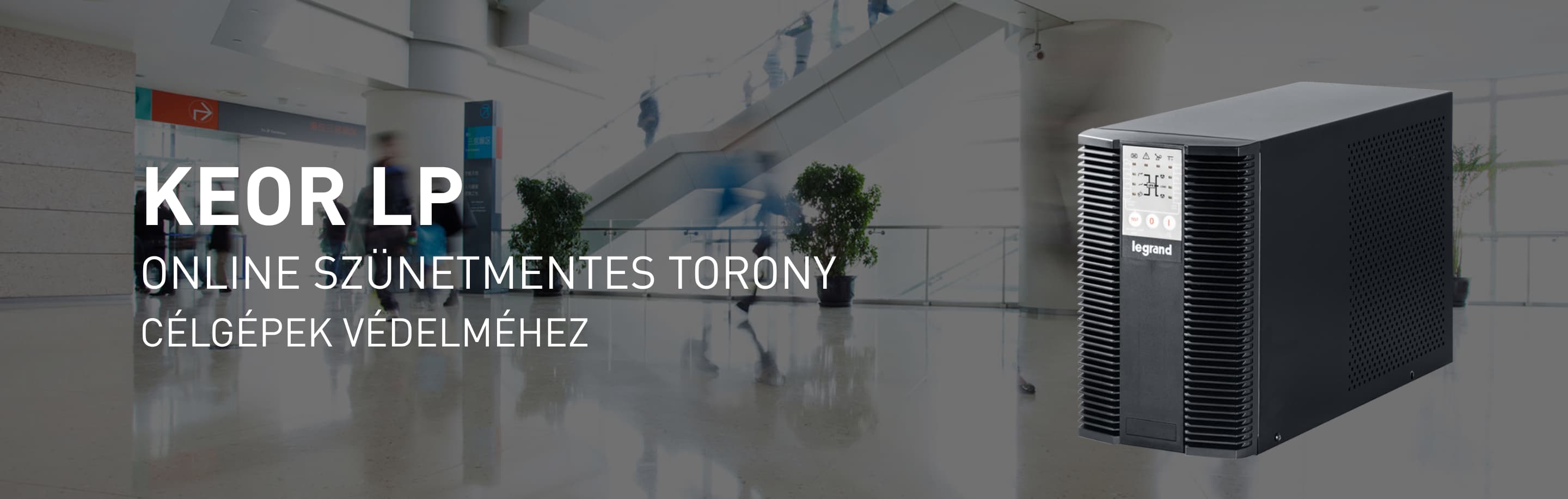 Egyszerű, torony felépítésű, kimagasló műszaki paraméterekkel rendelkező, online kettős konverziós szünetmentes áramforrások. 1000, 2000 és 3000 VA teljesítményű termékek megtáplálás és kimenetek szempontjából egyaránt teljesen plug&play kialakításúak. A kínálat tartalmaz továbbá akkumulátor szekrényeket és hozzá tartozó kiegészítőket az áthidalási idő bővítése céljából. A KEOR LP készülékek kompakt felépítésük mellett, műszaki jellemzői teszik kimagaslóvá, úgymint: magas kimeneti teljesítménytényező; tűzvédelmi lekapcsoló kontaktus (EPO); kiemelt ABM akkumulátorkezelés; WEB/SNMP vagy szárazkontakt kártya fogadására alkalmas szlot; back-feed védelem; RS232 kommunikációs port.